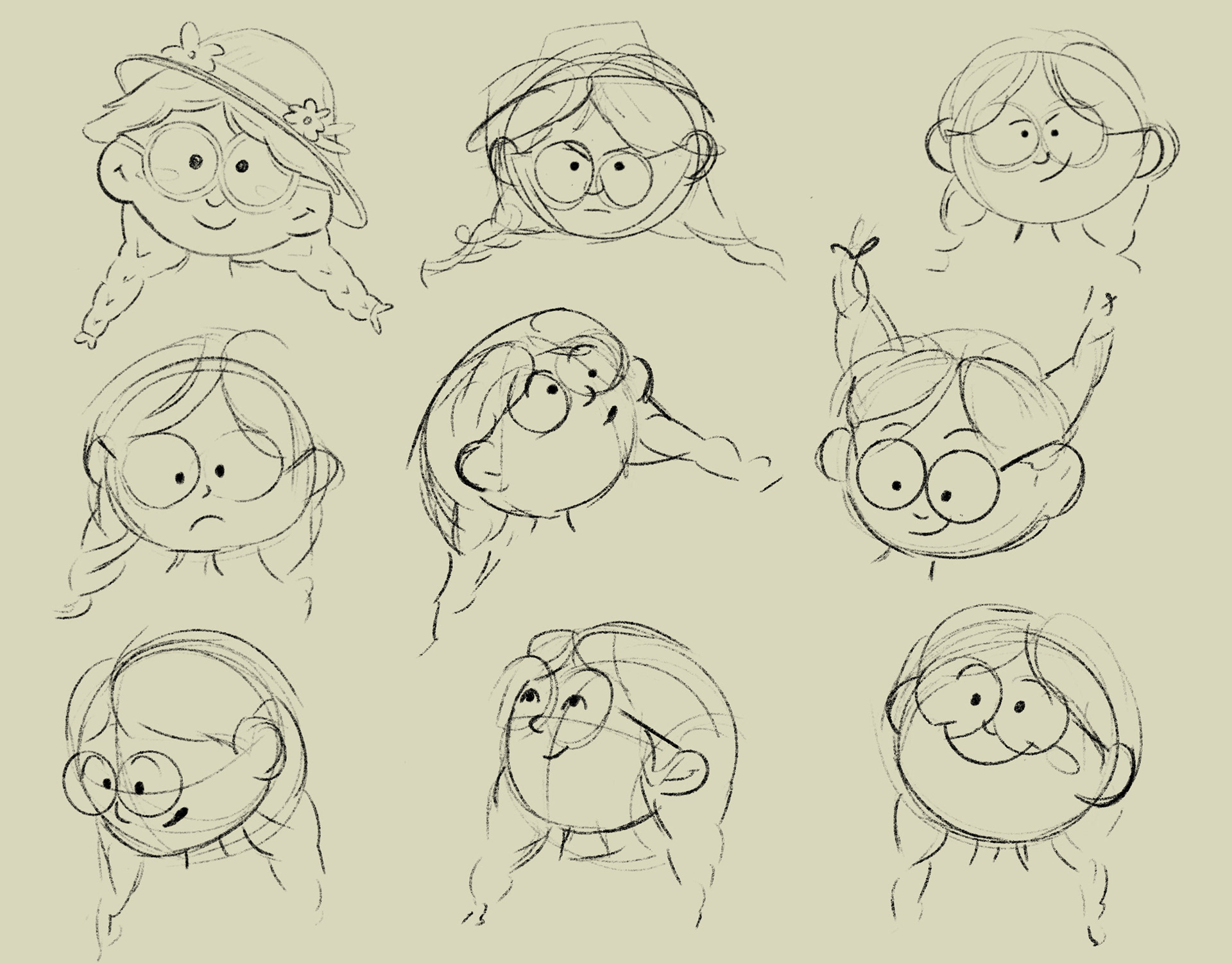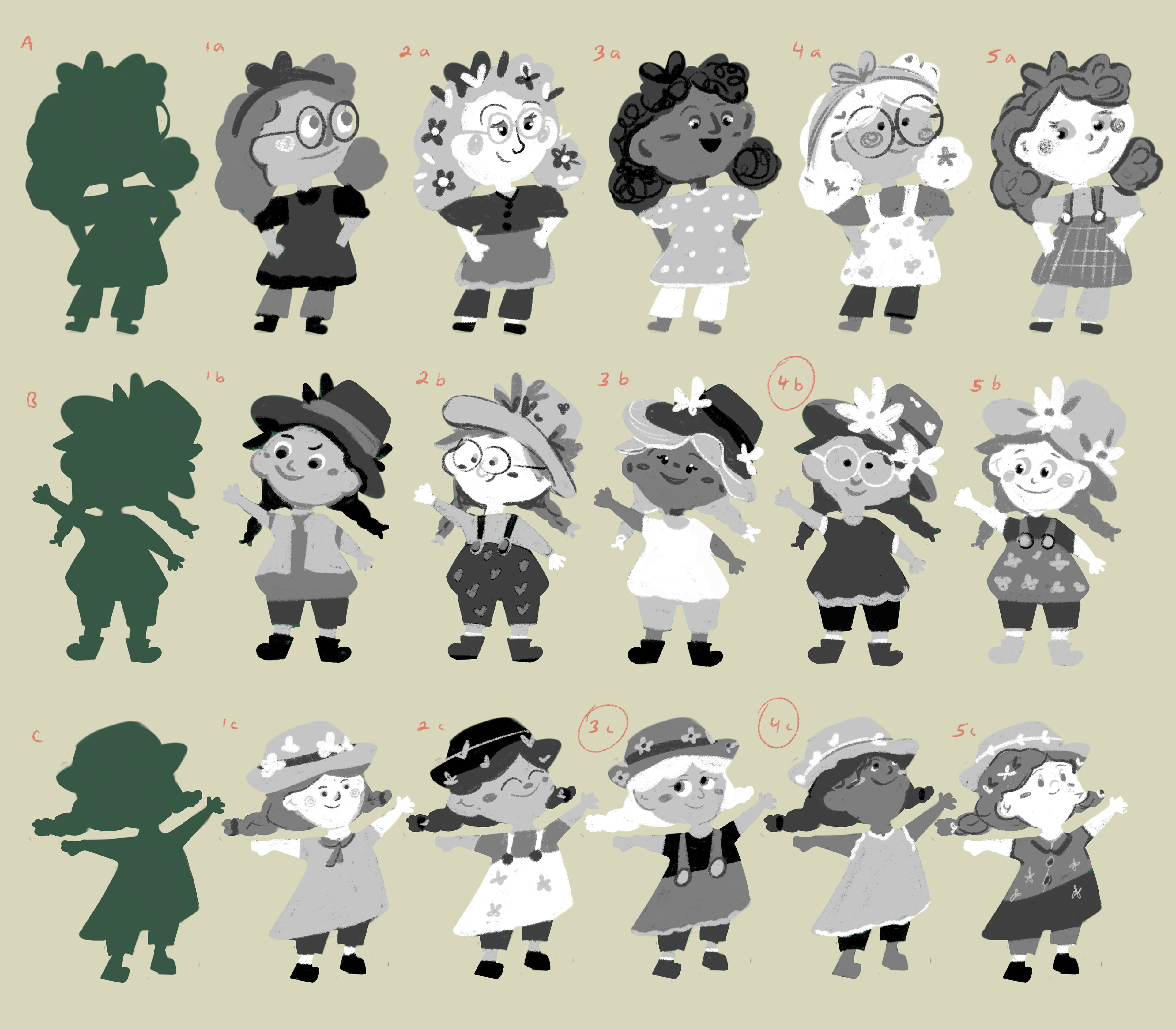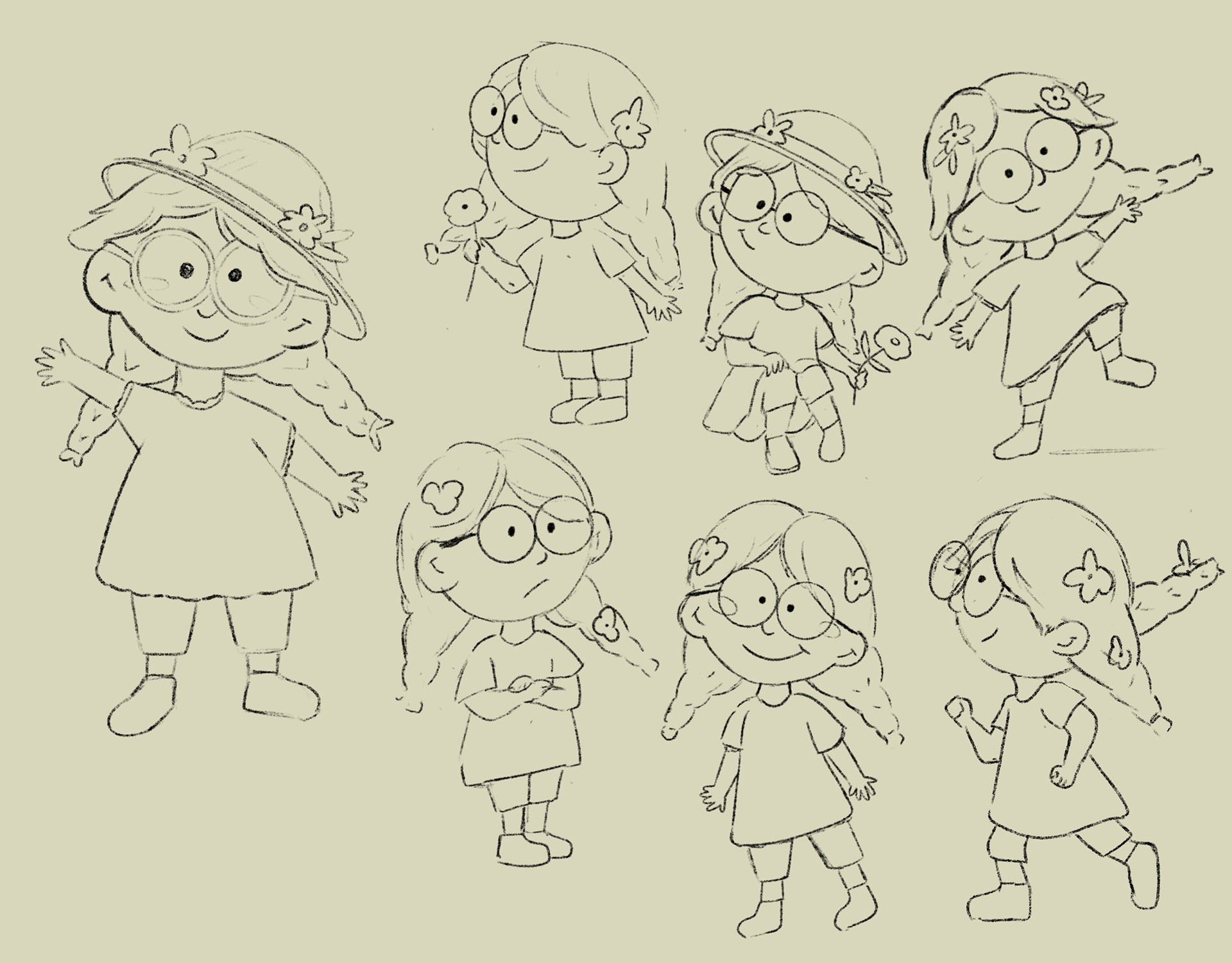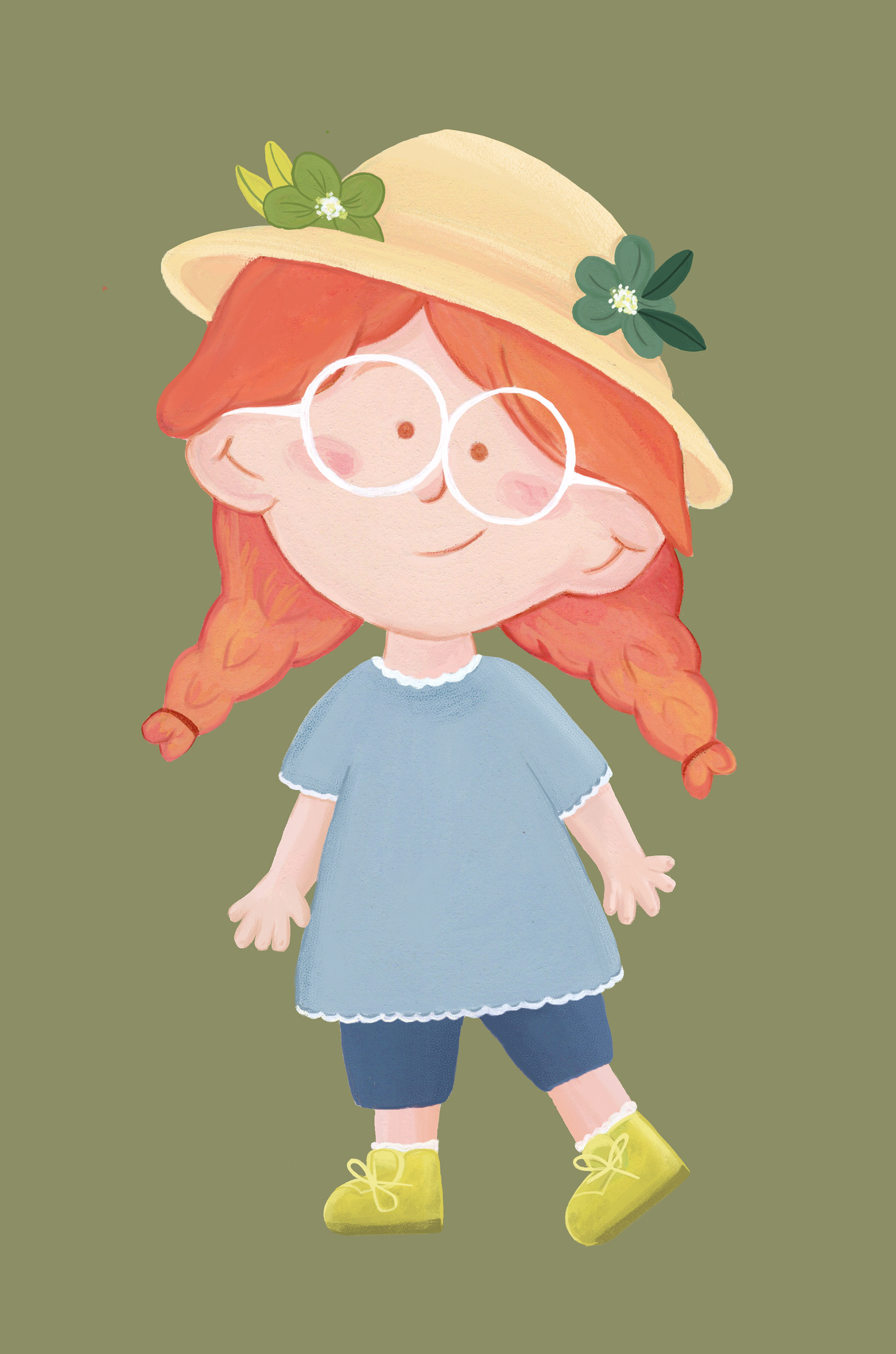 Character design for a children's book about a young girl on a farm who looses her best friend, Dena the duck. Ivy must go on an adventure to find her friend but along the way, she discovers coping skills and problem solving