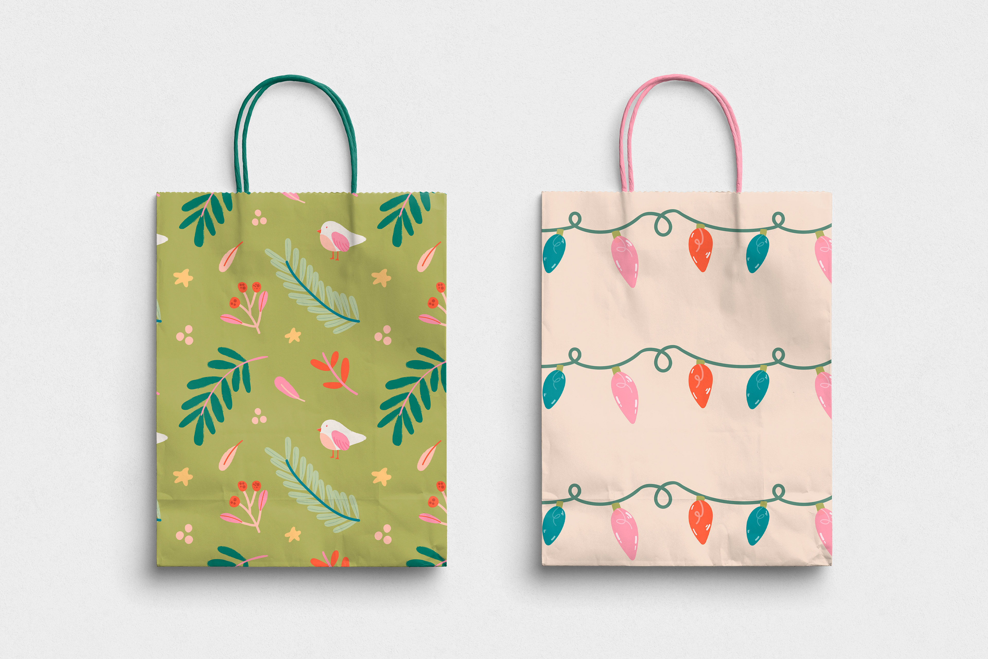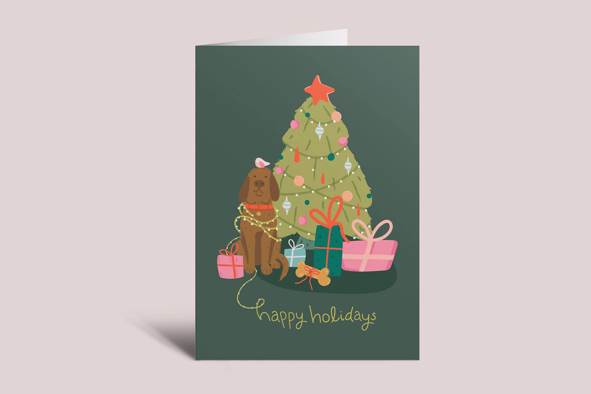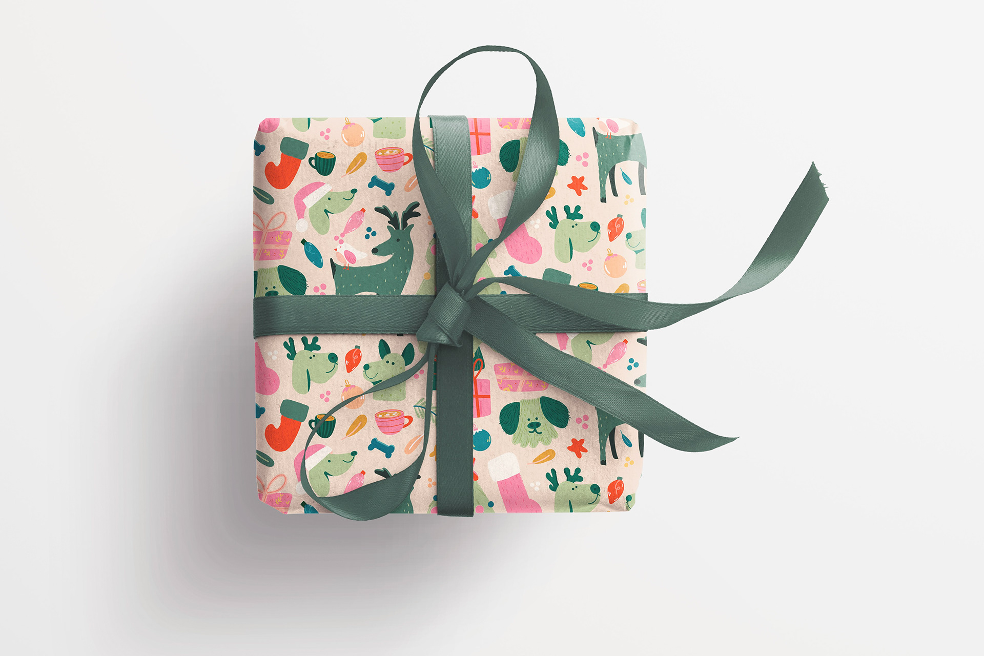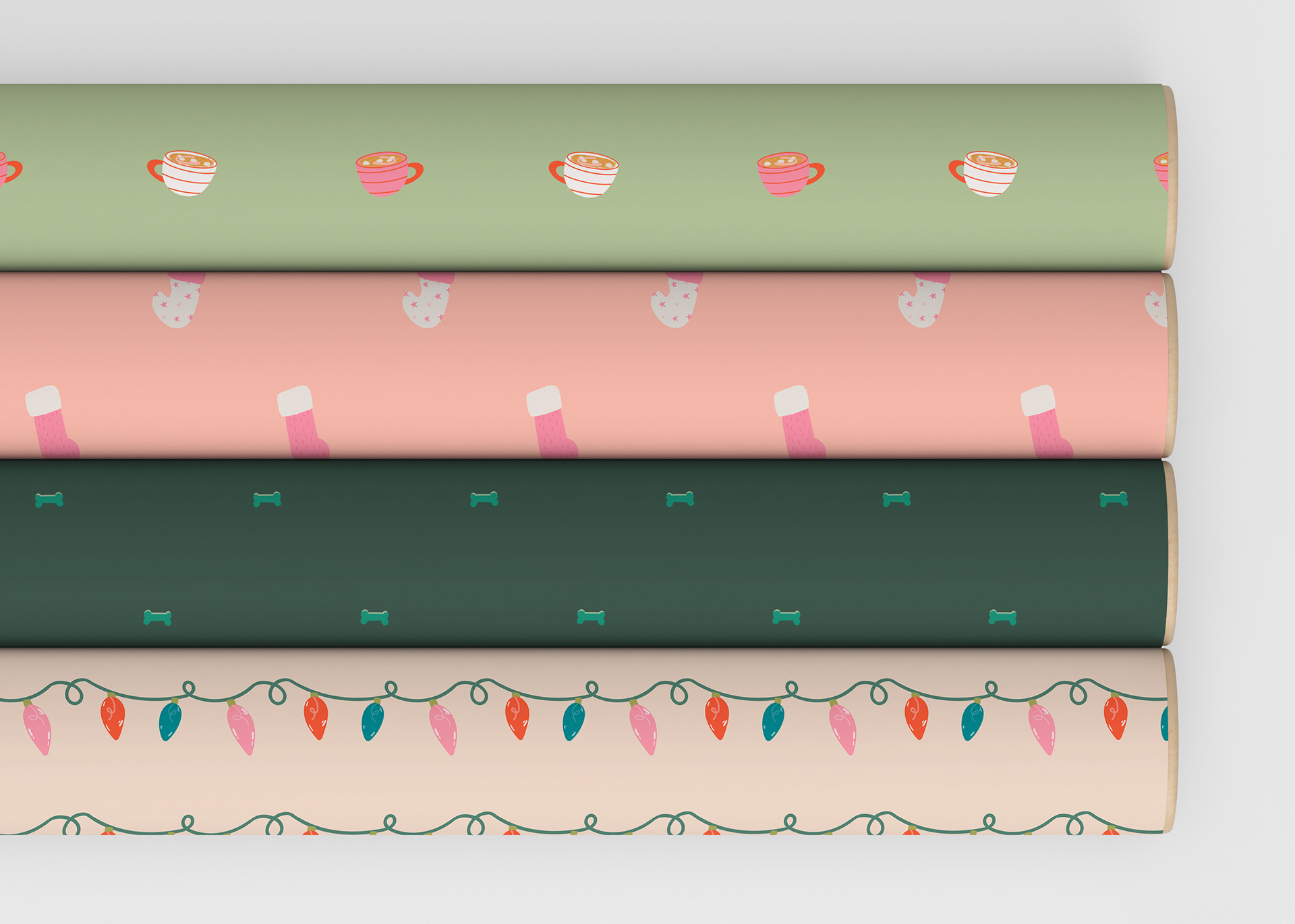 This was a Christmas holiday-inspired collection depicting cute doggies and nature elements. I chose a soft color palette, as opposed to traditional colors