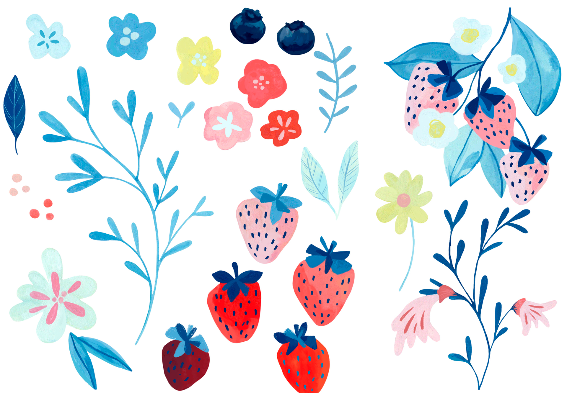 Paper goods pattern collection inspired by berries, citrus, and florals!